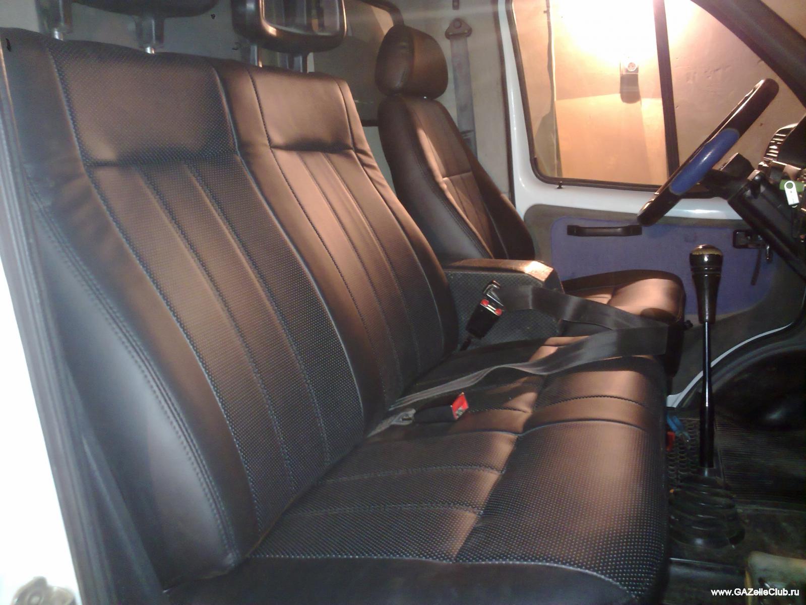 Цена за перетяжку всех сидений восемь тысяч рублей работа плюс материал..По месту сидения пассажиров и водителя в середине вшита перфорационная кожзам, чтобы не сидеть в луже летом..Ремни безопасности новые, причём на сторону пассажира был куплен такой же ремень как со стороны водителя он длиннее на 40-50 см..Теперь пассажиры довольны..У новых кстати катушка намного мягче..