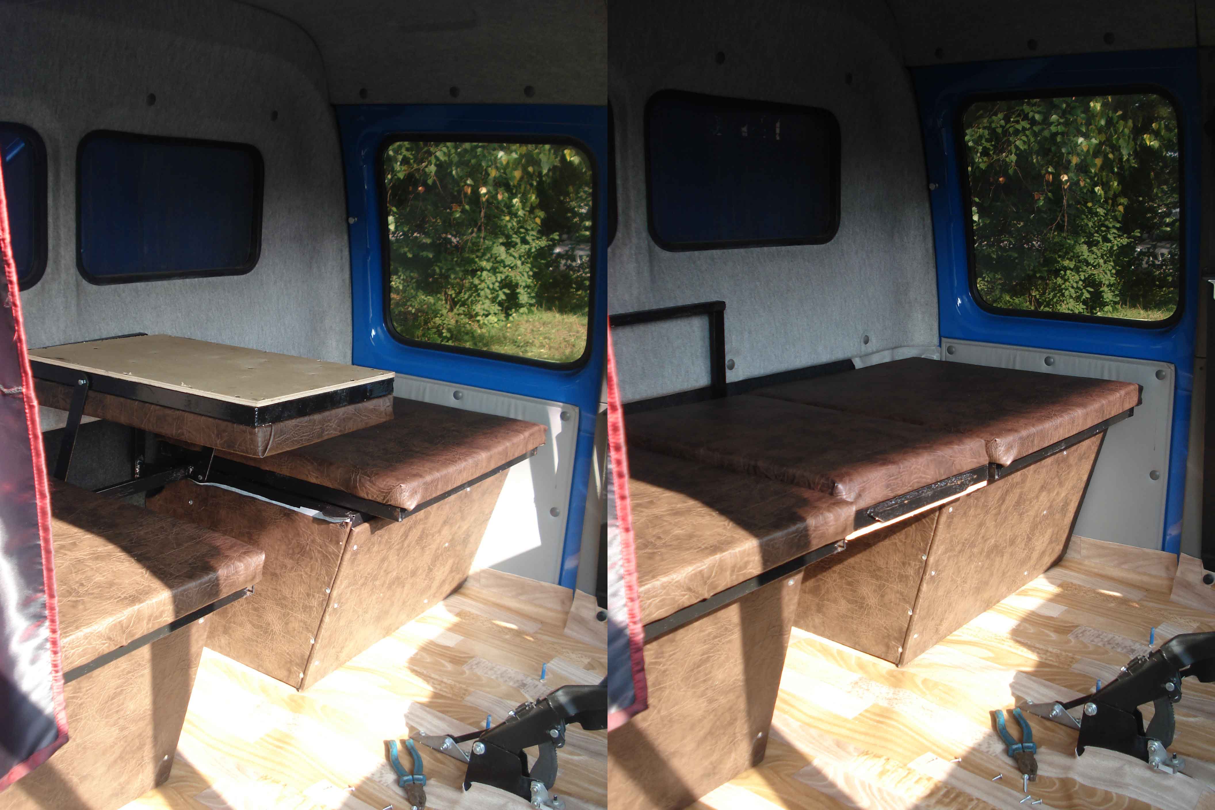 Spas750 327 Опубликовано 6 августа, 2013 С виду нормалек, но фото без передней сидухи, какое там расстояние остается, общая ширини лежака и как пассажиры без спинки долго ехать будут, спинка нужна.Я вот себе думаю двухспалку делать, но спинку надо чтоб фиксировалась в нормальном положении, в плотную к стене (если один спиш) и в 2 яруса. Поделиться этим комментарием Ссылка на комментарий