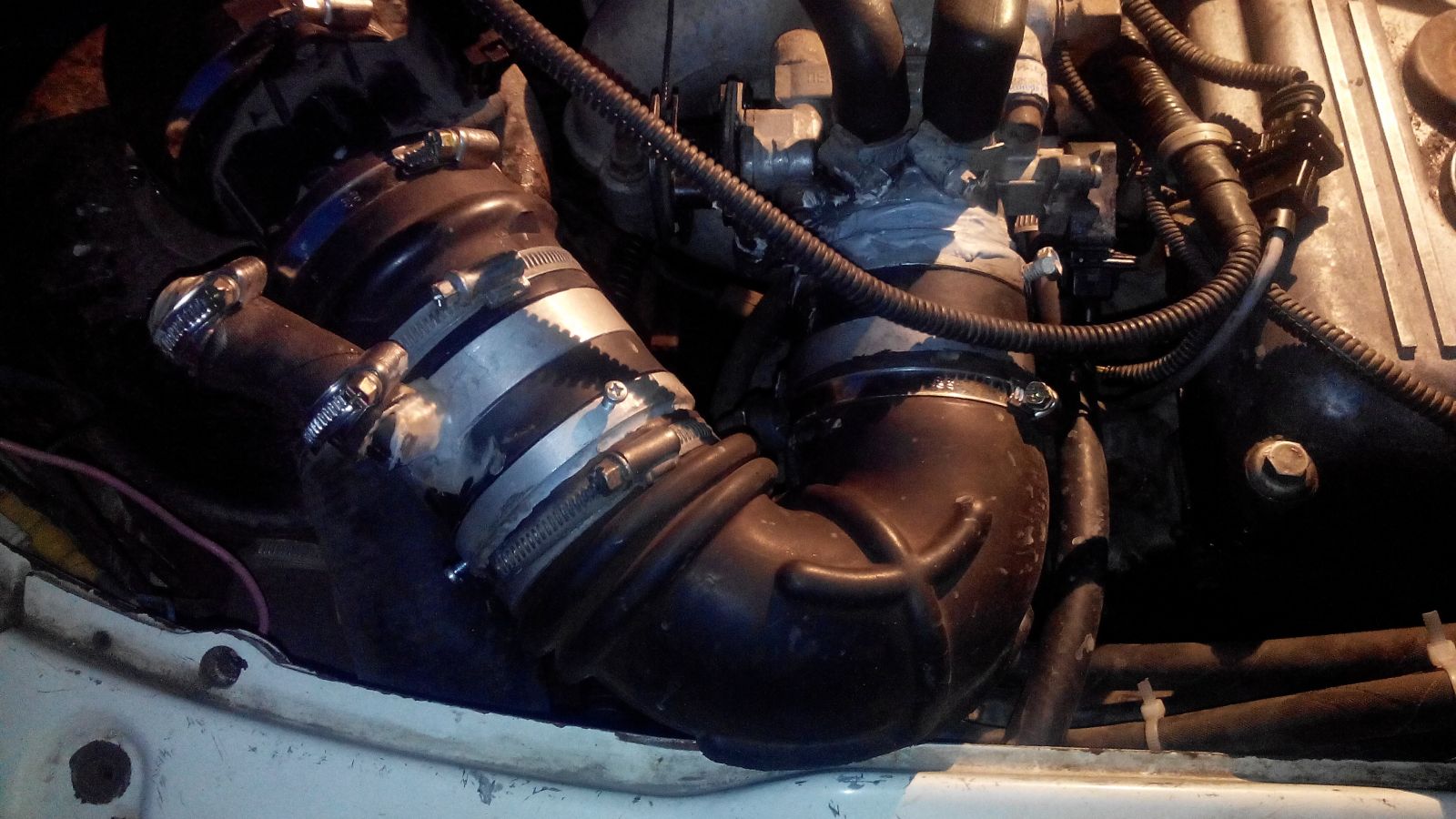 Поставил второй антихлоп, переделал патрубки (гофры) и передвинул чуть дальше датчик ДМРВ, для спасения его!