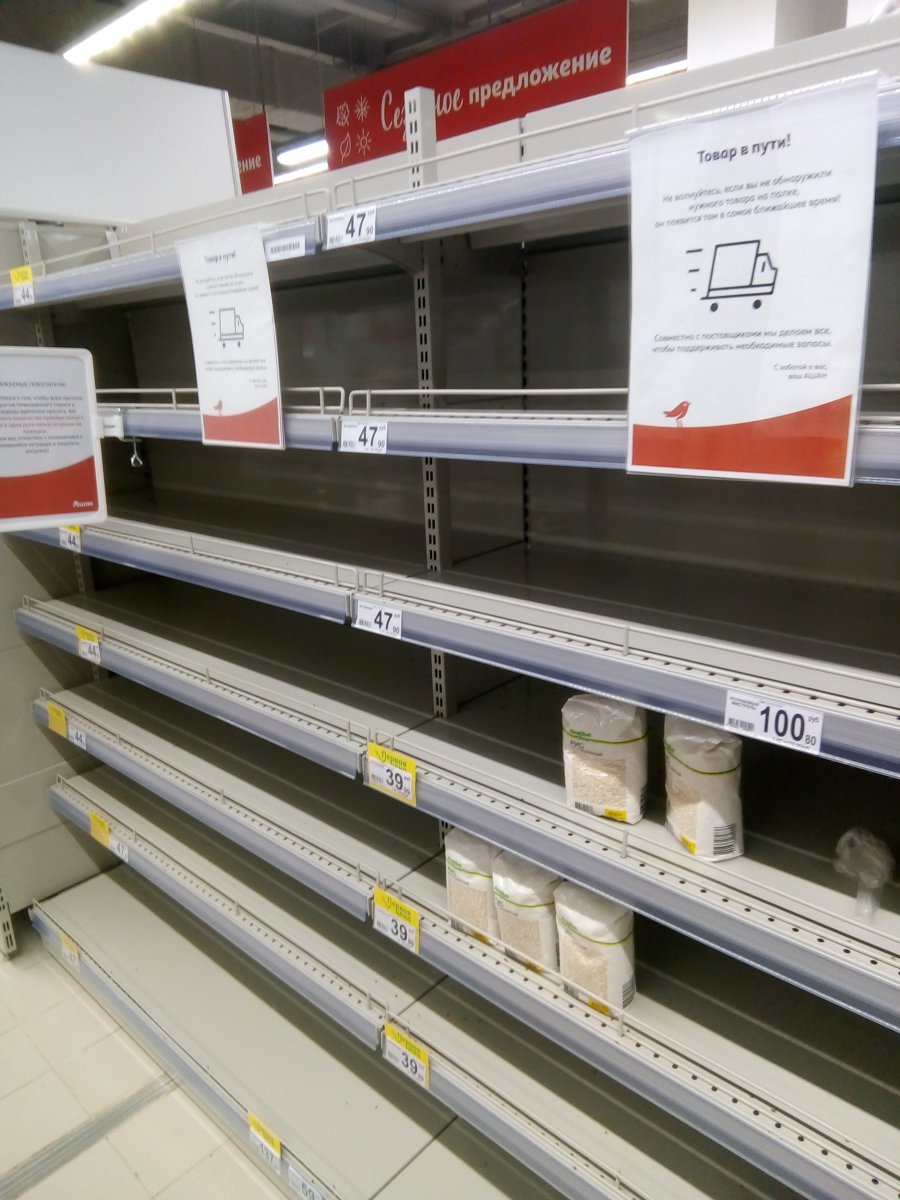 Полупустые полки в магазинах..