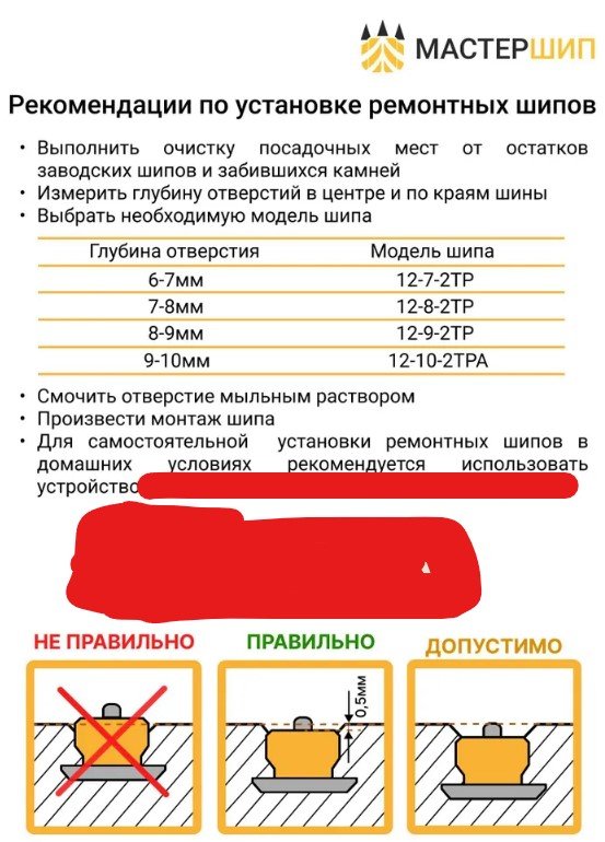 Vovka31 514 Опубликовано 6 апреля, 2024 В 05.09.2023 в 16:56, PanDiman сказал: попробовал сегодня дошиповать колесо. Обязательно надо очищать отверстие от грязи, смачивать мыльным раствором, я использовал чернитель шин, там в нем силикон присутствует. Шуруповёрт ставим на маленькую скорость (на первую, там у меня до 400 об/мин). Пару раз шип не доставлялся в отверстие, думаю нажимал не так сильно. Замеряем глубину отверстия где раньше был шип (я использовал вот такой приборчик https://aliexpress.ru/item/1005004187293309.html?sku_id=12000033943501620&spm=a2g2w.productlist.search_results.2.7acc4aa6F7RAY3) и подбираем ремонтный шип в зависимости от глубины (в описании шипов все указано ) https://www.ozon.ru/product/remontnye-shipy-tekom-10-mm-12-10-2tra-fasovka-100-sht-191131036/?advert=TAjjt0M47VDGl0snH0LljD7ifnq70EjotW1yA7gwk612qIdpncCsoai3KZNL-UDJoD5BqZ12t8iTS7-CrBnpSh4fvRxwlrJ5CKl9lVPSVL4wxDtBw0g8ns73QqpTiB39nhJc0r6Cx6zOkWt-AHcDcTonyh77DzW8fOjW&avtc=1&avte=2&avts=1693921944&sh=e5aCAsagPw Тоже решил попробовать частично заменить болтающиеся шипы на Матадоре. Измеритель глубины у меня был уже вот такой https://aliexpress.ru/item/1005004187293309.html?sku_id=12000036282154731&spm=a2g2w.productlist.search_results.2.7acc4aa6F7RAY3, покупать приспособу для шуруповерта не стал, сделал самодельную из пистолета для герметиков. Попробовал на досуге, нормально сажает шип, нужно только руку набить. Только вот не получается по ихней картинке размеры подбирать. Если глубина более 7,5 мм то ставлю шип 9мм, иначе 8 мм слишком глубоко проскакивает и вообще внутри получается. Думал почему так, в точности и не понял. Есть предположение что, в отверстии для шипа посередине есть небольшой выступ, вот в него и упирается измеритель глубины, а когда шип садится он либо его прижимает, оттого так и получается, но факт остается фактом. Глубина 6,5-7,5 мм шип 8 мм, 7,5мм и более 9мм. У меня получилось пачка шипов 7 мм вообще не пригодилась пока. Поделиться сообщением Ссылка на сообщение Поделиться на другие сайты