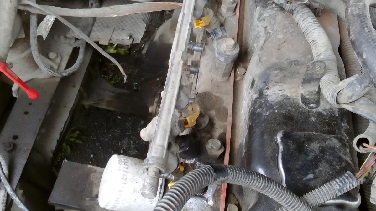 История моя продолжается, пришлось снять коллектора, в выпускном, по середине трещинка. Попробую заварить. Обломал шпилки, одну к кату, вторую на головке.  Ещё не могу рампу с форсунками вынуть. Там в головке стопора, что ли есть?