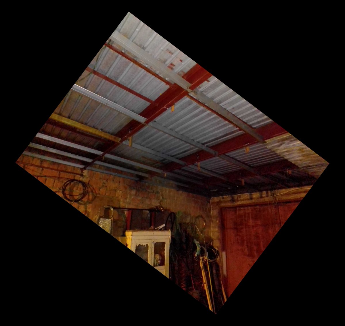 ZAN57 3 533 Опубликовано 14 апреля, 2020 Лет 15 откладывал утепление гаража- перекрытие, ворота. Конденсат льет с потолка, по воротам... Достало но некогда, а тут самоизоляция, решил использовать на это дело. Перед этим выписал по инету электроталь 500кг и цепную каретку для неё. Понятно начал с приварки подвесов для троллеи каретки, для будующих точек промежуточного полиспаста тали, для крепежа багажника и прочего хлама к потолку, тк после установки листов профынастила на потолок балки для приварки закроются. Листы ПН на потолок буду крепить к потолочным профилям, а те на сварке полуавтоматом к швеллерам16 перекрытия. На фото видно потолочные профили и подвесы троллейного пути и прочих точек крепежа. 2 Поделиться сообщением Ссылка на сообщение Поделиться на другие сайты