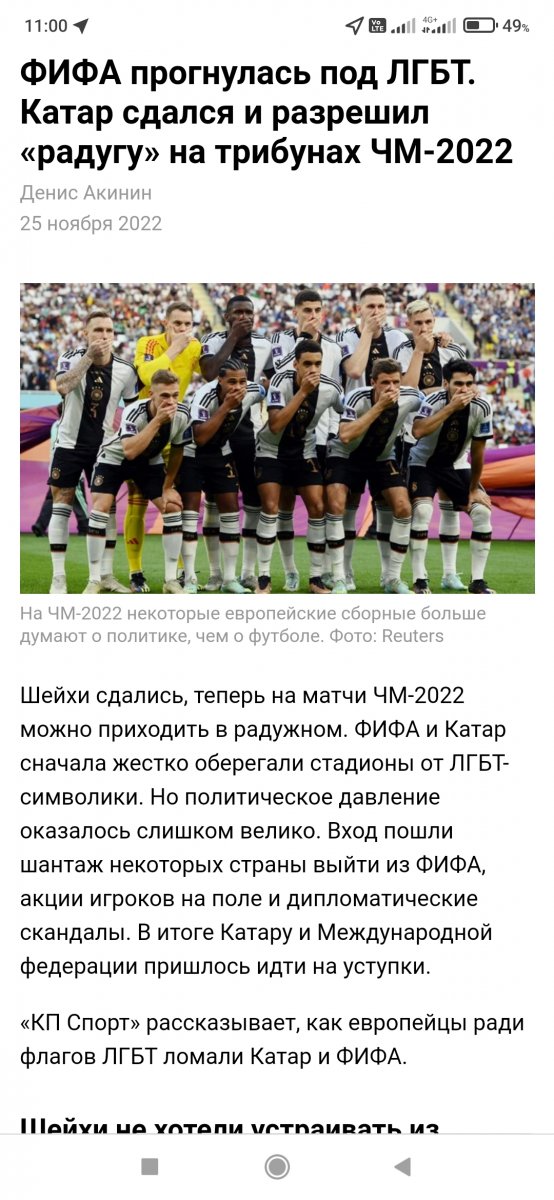 Brovkin 899 Опубликовано 16 декабря, 2022 3 минуты назад, Alex030569 сказал: На рукава некоторых команд посмотри. Это не Катар! Ты хоть прочитай свою статью-то ))) Поделиться сообщением Ссылка на сообщение Поделиться на другие сайты