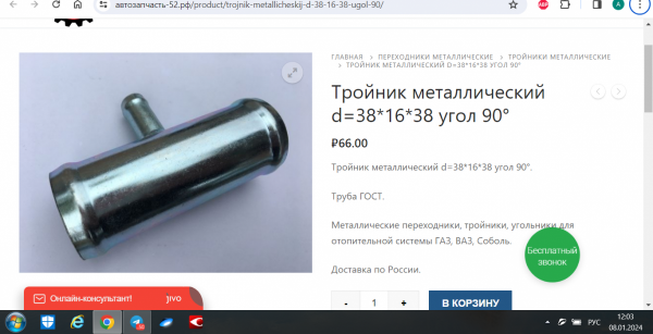 Заказал в Автопитере за 124 руб тройник.