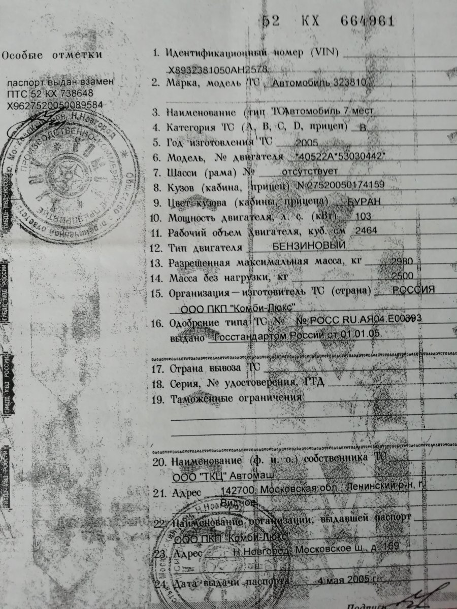 dtrans 1 412 Опубликовано 13 октября 1 час назад, газель2005 сказал: Номер оттс на основание чего выдали птс в студию. Вот например запись из любого Оттс на данную модификацию. Модификации 322173, 22177, 221717, 32217 - специализированные пассажирские транспортные средства категории М2G класса В Их же не только ГАЗ делает. К примеру 323810 и 323820(4х4), авто 7 мест, категория В(М2). ОТТС РОСС RU.АЯ04.E00393 Это Соболь с высокой крышей и салоном Ривьера. На базе грузовых 2752 и 27527. 2005 год. Поделиться сообщением Ссылка на сообщение Поделиться на другие сайты