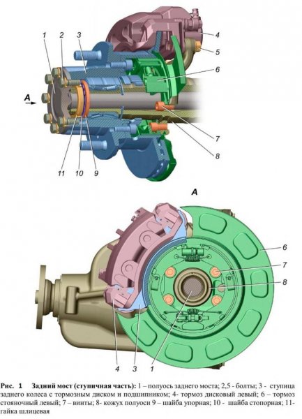Как устроена ступичная часть заднего моста показано на изображении